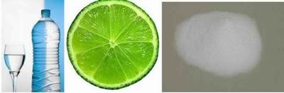Limpador multiuso: 1/2 colher (de cha) de carbonato de sódio, 1 colher de sabão líquido, dois copos de água quente.